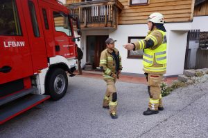 Um 13:00, als die Übungsleitung Kommandant Schmirn OBI Matthias Eller und Übungsbeobachter Bezirksfeuerwehrkommandant OBR Thomas Reiner, Abschnittskommandant Wipptal ABI Thomas Triendl, Abschnittskommandant Lans ABI Werner Strobl, Bürgermeister/Kommandant a.D. Vinzenz Eller sowie Kommandant a.D. Alois Eller am Übungsobjekt eingetroffen waren, wurde für die Übung alarmiert. Mit einer Anfahrtszeit von 12 Minuten traf die Einsatzleitung am Objekt ein und es wurde das Szenario gleich in die Bereiche Brandbekämpfung und Relaisleitung mit jeweiligen Zuständigkeiten getrennt. Die unmittelbar nachher eintreffenden TLF-A und LFB-A bereiteten den Innenangriff mittels Atemschutz sowie den Außenangriff vor. Die FF-Vals-St.Jodok mit ihrem LFBAW und einer Anfahrtszeit von 20 Minuten sowie die FF-Steinach mit GTLFA9000 sowie DLK und einer Anfahrtszeit von 25 Minuten unterstützten die Feuerwehr Schmirn bei der Brandbekämpfung.