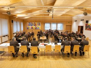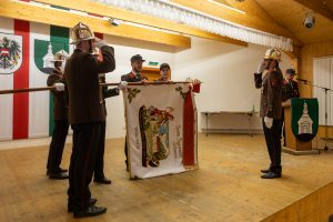 Nach dem Gottesdienst haben wir uns im Gemeindesaal eingefunden und haben mit der Florianifeier gestartet. Dazu durften wir besonders begrüßen: Bürgermeister und Ehrenmitglied KDT a.D. Vinzenz Eller und seine Gemeinderäte, Bezirksschriftführer BV Thomas Rainer, Abschnittskommandant ABI Thomas Triendl, Ehrenmitglied KDT a.D. Alois Eller und die Musikkapelle Schmirn unter der Leitung von Kapellmeister Oswald Mader und Obfrau Christina Eller.