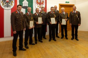 Nach den Beförderungen durften wir die Ehrungen durchführen. Für 25 Jahre Mitgliedschaft erhielten HFM Eller Michael und zu 50 – jähriger Mitgliedschaft dürfen wir gratulieren: HFM Johann Auer, BI Vinzenz Eller, HFM Andreas Steckholzer und HFM Erich Zingerle.