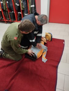 In der Woche nach der Florianifeier haben wir mit der Frühjahrsproben-Saison gestartet. In der ersten Woche hat wieder jeder Zug für sich eine Schulung im Feuerwehrhaus gemacht. Neben der Auffrischung der Beladung und Wiederholung zum Feuerwehrfunk hatten wir heute ein besonderes Highlight. Unser Feuerwehr-Sanitäter Pati hat uns einen Defibrillator und eine Übungspuppe mitgenommen und mit uns die Grundlagen der Reanimation geübt. Sowohl für den Einsatz aber auch für den Alltag war diese Schulung eine wertvolle Erfahrung, um für den Ernstfall vorbereitet zu sein.