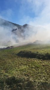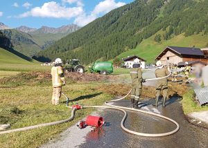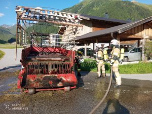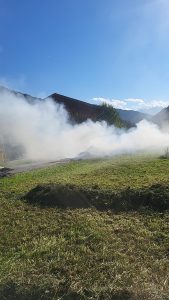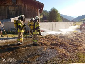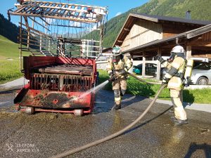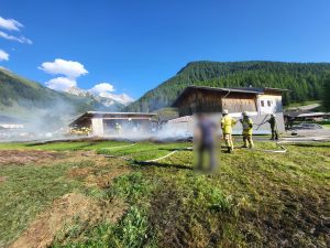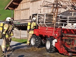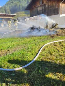 10.08.2024 – Um 17:41 wurden wir mittels Sirene zu einem Fahrzeugbrand in Toldern alarmiert. Ein Transporter mit aufgebautem Heuladewagen hat Feuer gefangen und die geladene Fuhre hat sich entzündet. In unmittelbarer Nähe wohnende Feuerwehrmitglieder konnten den Vorfall beobachten und haben gleich mit Feuerlöschern erste Löschmaßnahmen gesetzt. Der Fahrer konnte das brennende Ladegut noch auf die Straße entladen und das Fahrzeug etwas weiter auf der Straße abstellen. Wir haben unter Atemschutz mit 2 Trupps das brennende Heu gelöscht und das Fahrzeug auf etwaige Glutnester untersucht. Kurz nach 18:00 konnte dann Brandaus gegeben werden. Im Einsatz waren LFB-A, TLF-A und LASTA mit 25 Mann sowie 15 Mann auf Bereitschaft im Gerätehaus und die Polizeiinspektion Steinach am Brenner.