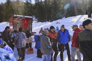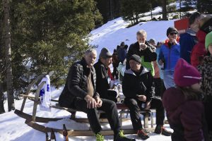Bei strahlendem Sonnenschein konnte ein gemütliches und unfallfreies Rennen durchgeführt werden. Dass sich die Richtzeit im Vergleich zum letzten Jahr um sechs Minuten nach hinten verschoben hat, lag definitiv nicht an den optimalen Rodelbahn-Bedingungen. Wahrscheinlicher ist, dass die vom Sportverein Schmirn neu errichtete Ausschankhütte, die wir als „Halbzeit-Labestation“ nutzen durften, einfach zu gemütlich war 😉