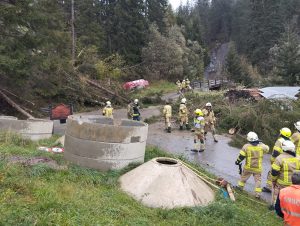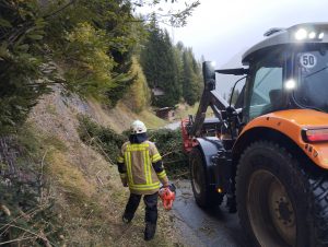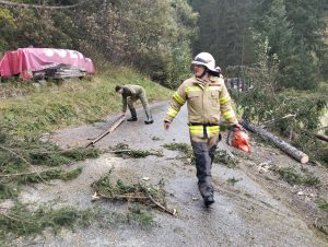 Am Freitag, 20.10.2023 wurden wir um 13:30 gemeinsam mit der Feuerwehr Vals-St.Jodok mittels Sirene zu umgestürzten Bäumen auf der Gemeindestraße in der unteren Leite alarmiert. Mit dem LASTA und 6 Mann fuhren wir aus und konnten die Bäume gemeinsam mit der Feuerwehr Vals-St.Jodok freischneiden. Der Gemeindetraktor der Gemeinde Schmirn entfernte die Bäume. Bei der Rückfahrt über die untere Leite mussten wir mehrmals stehenbleiben und umgerissenen Bäume entfernen. Nach eineinhalb Stunden konnten wir wieder ins Feuerwehrhaus einrücken.